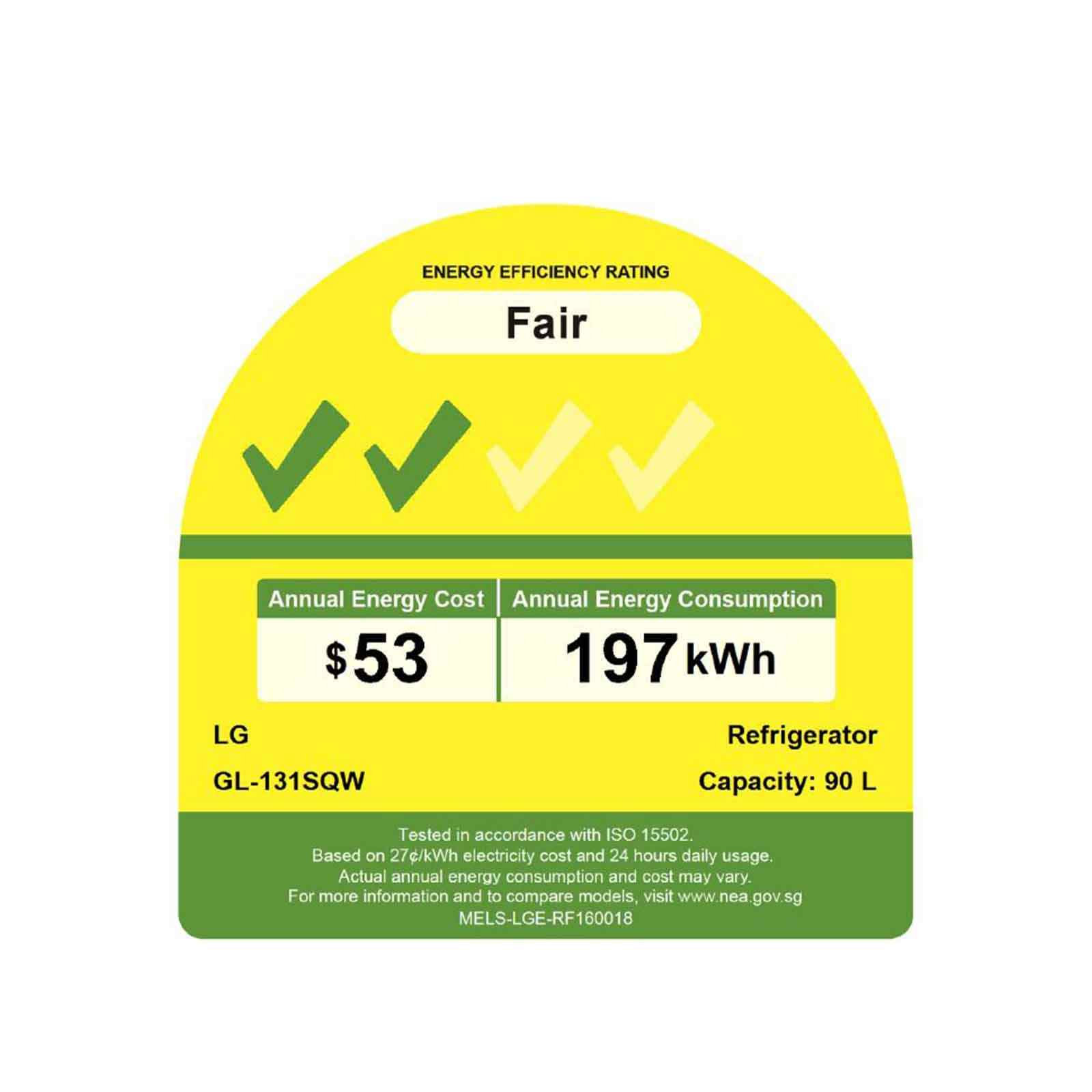 LG GL-131SQW 90L BAR FRIDGE (2 TICKS)
