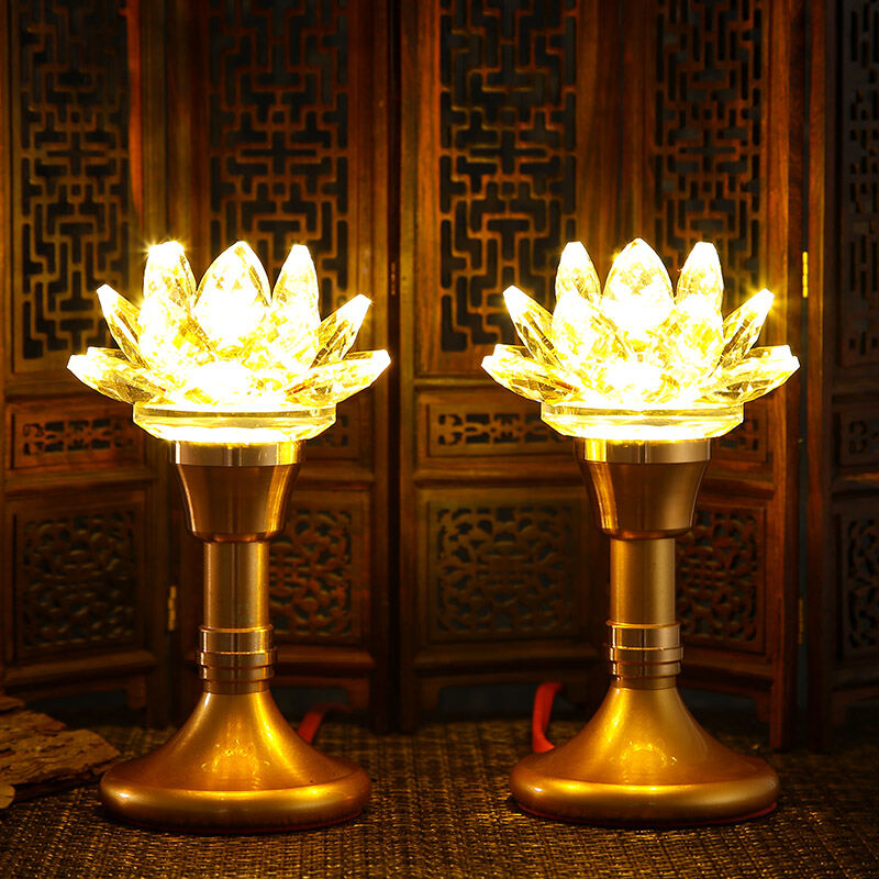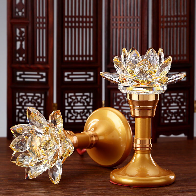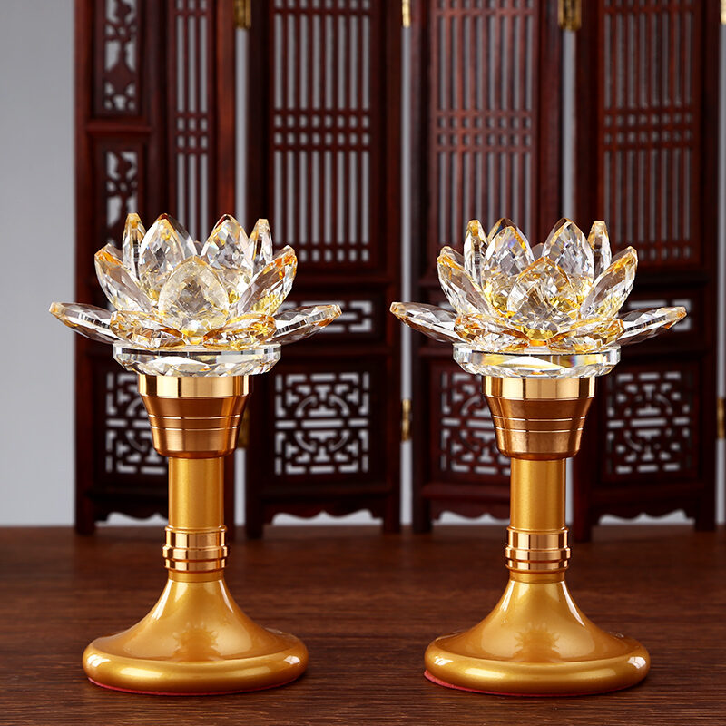 Yuantong Buddha Set Colorful Crystal Lotus Lamp Buddha Worship Lamp Led Buddha Lamp Long Lamp Home a Pair of Buddha Front Flower Lamp