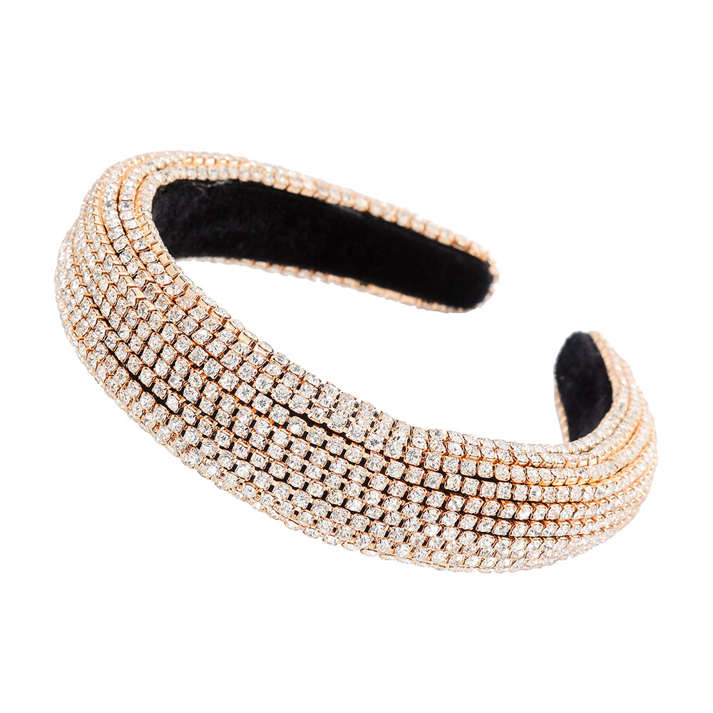 Woman Luxury Full Diamond Beads Crystal Hair Band Retro Rhinestone Padded Sponge Wide Headband Crown