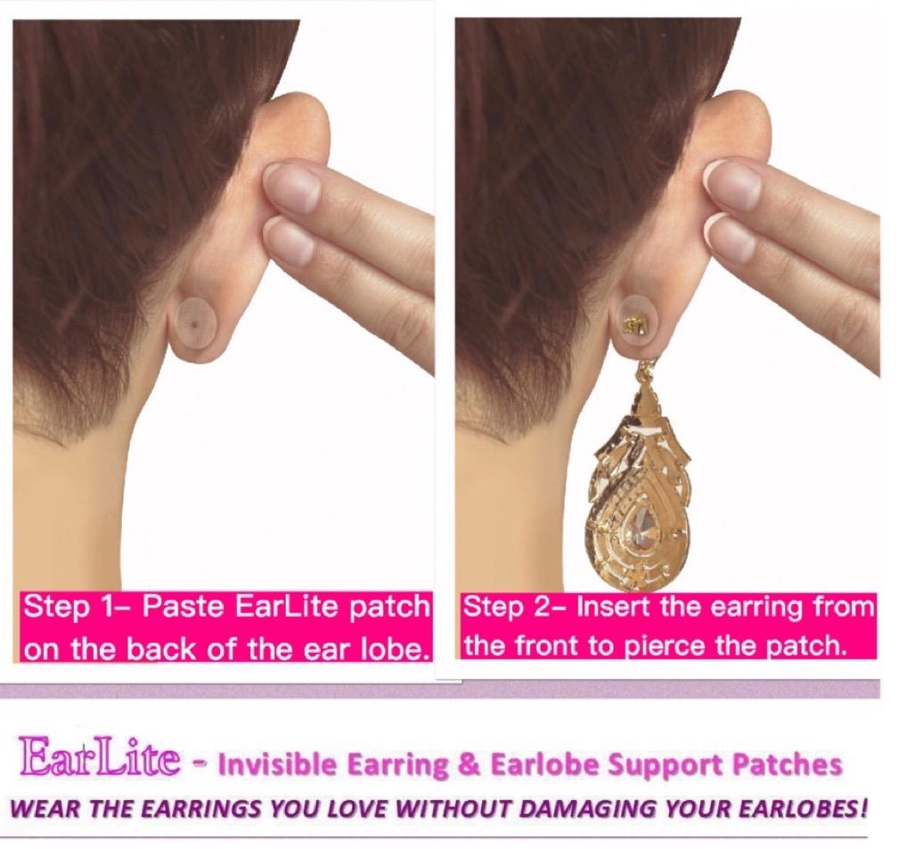 Invisible Earring Support Patches that Prevent Stretching And Tearing Of Earlobes From The Weight Of Earrings. Helps Alleviate Skin Sensitivity To Many Earring Backings And Metals.It takes 20 seconds to Safeguard your Earlobes.