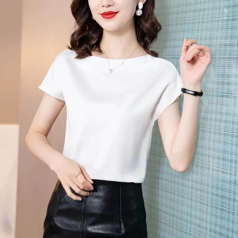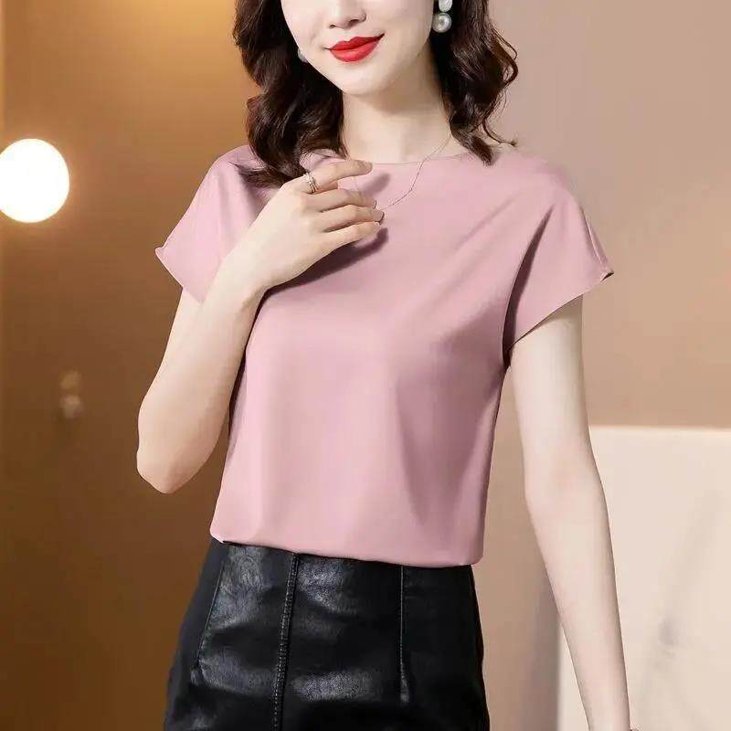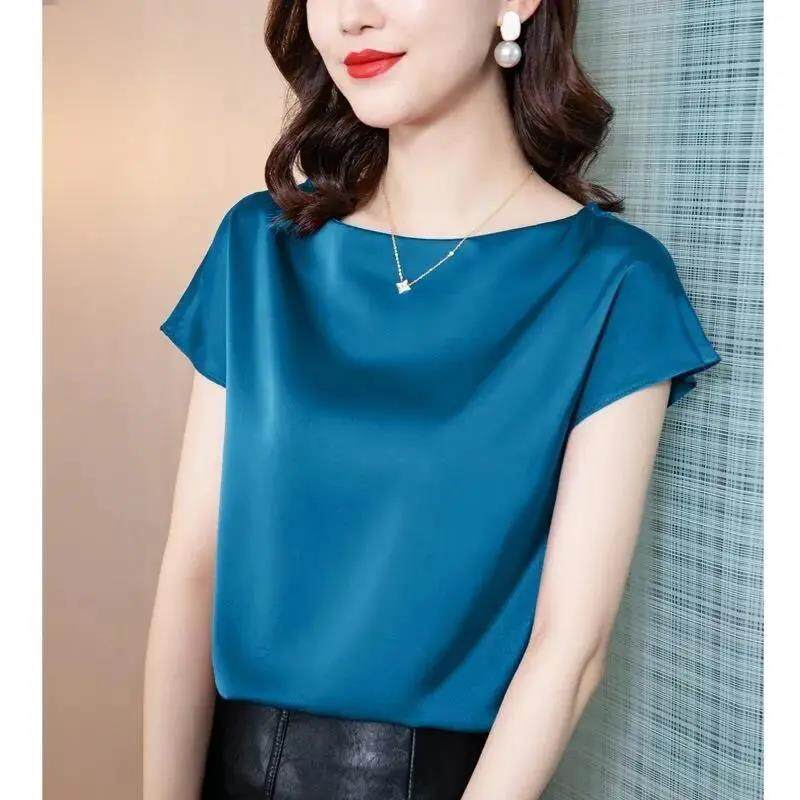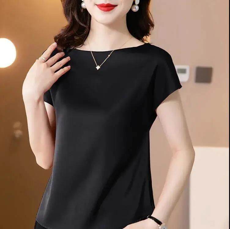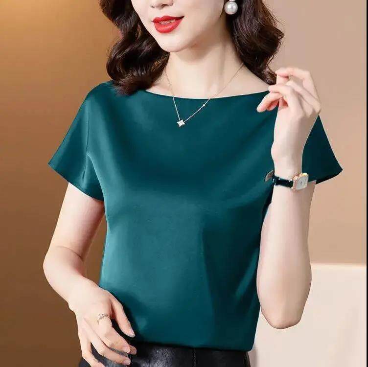 EDQRDQ Women's Short Sleeve Satin Plus Size Blouse Casual Loose Silk Tops Shirt Loose Fit Top