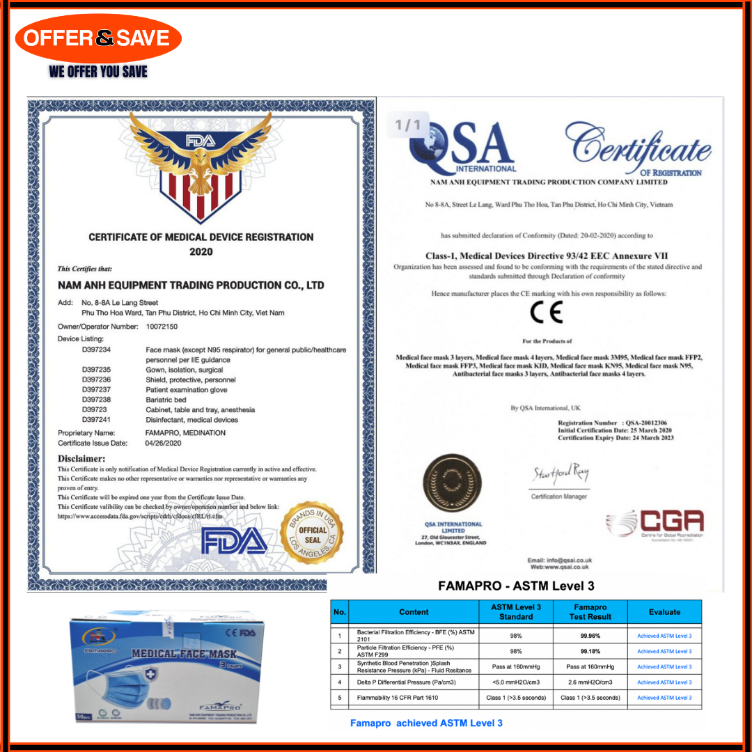 [Local Stock] 3 Ply 50pcs Medical Face Mask FDA CE ISO Approved / Non Medical 3 Ply Face Mask China Standard Approved