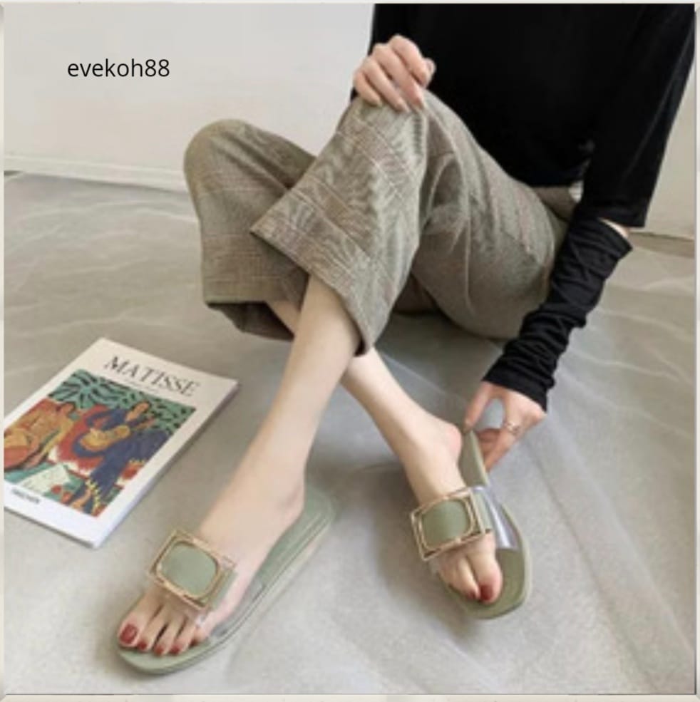 Woman Sandal Slides Square Buckle Summer Daily Fashion Transparent Latest design 2021 Zar~