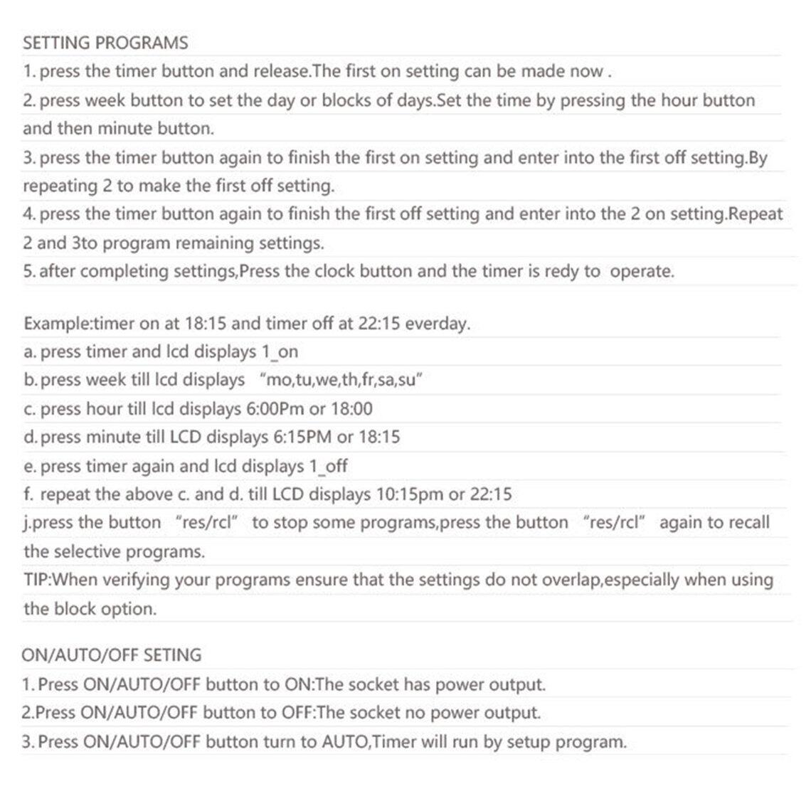 2. Timer: timer, 10A current, automatic power off.