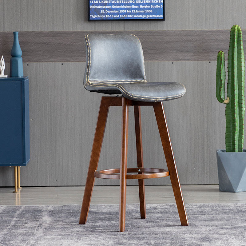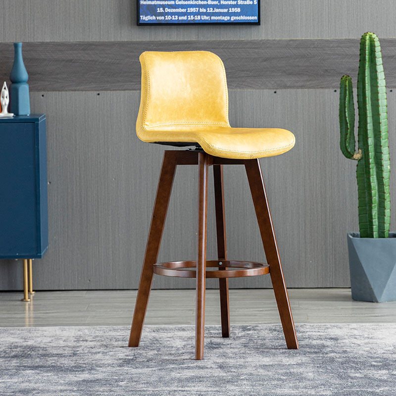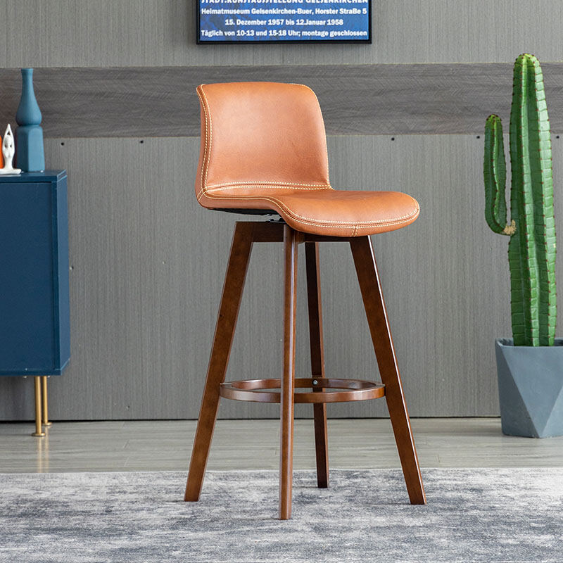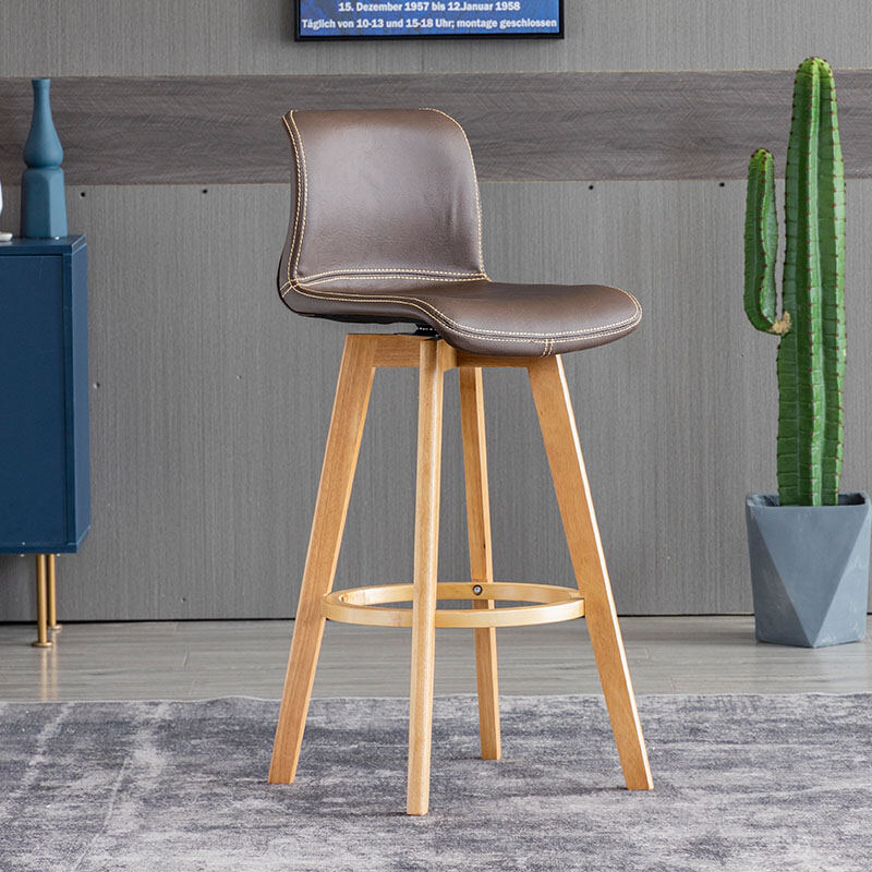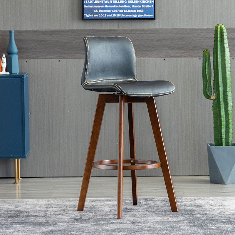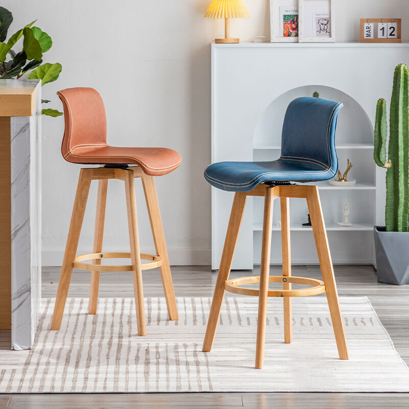 Solid Wood Bar Stool Rotating Bar Chair Front Desk High Leg Chair Creative High Leg North Tea Shop Backrest Home Bar Stool