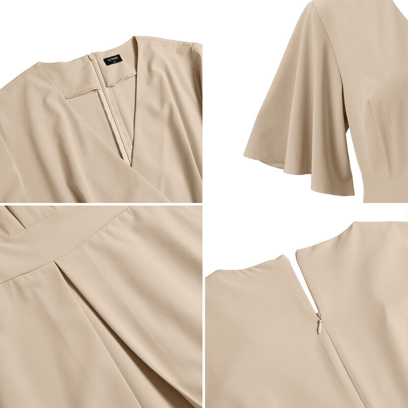 VONDA Women Short Sleeve V Neck Holiday Tunic Dress Fashion Pleated Party Mini Dresses (Korean Causal)