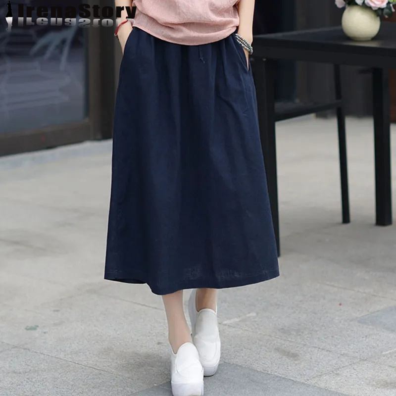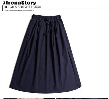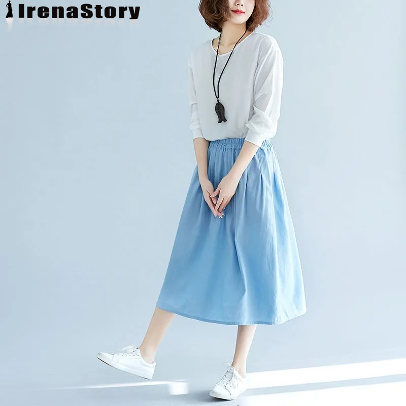 (S-4XL) IRENASTORY Korean Style Cotton Skirts for Women Plain Color Elastic Waist A-line Skirt Elastic Waist Plus Size Skirt