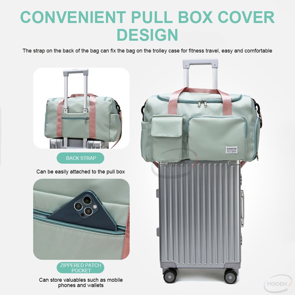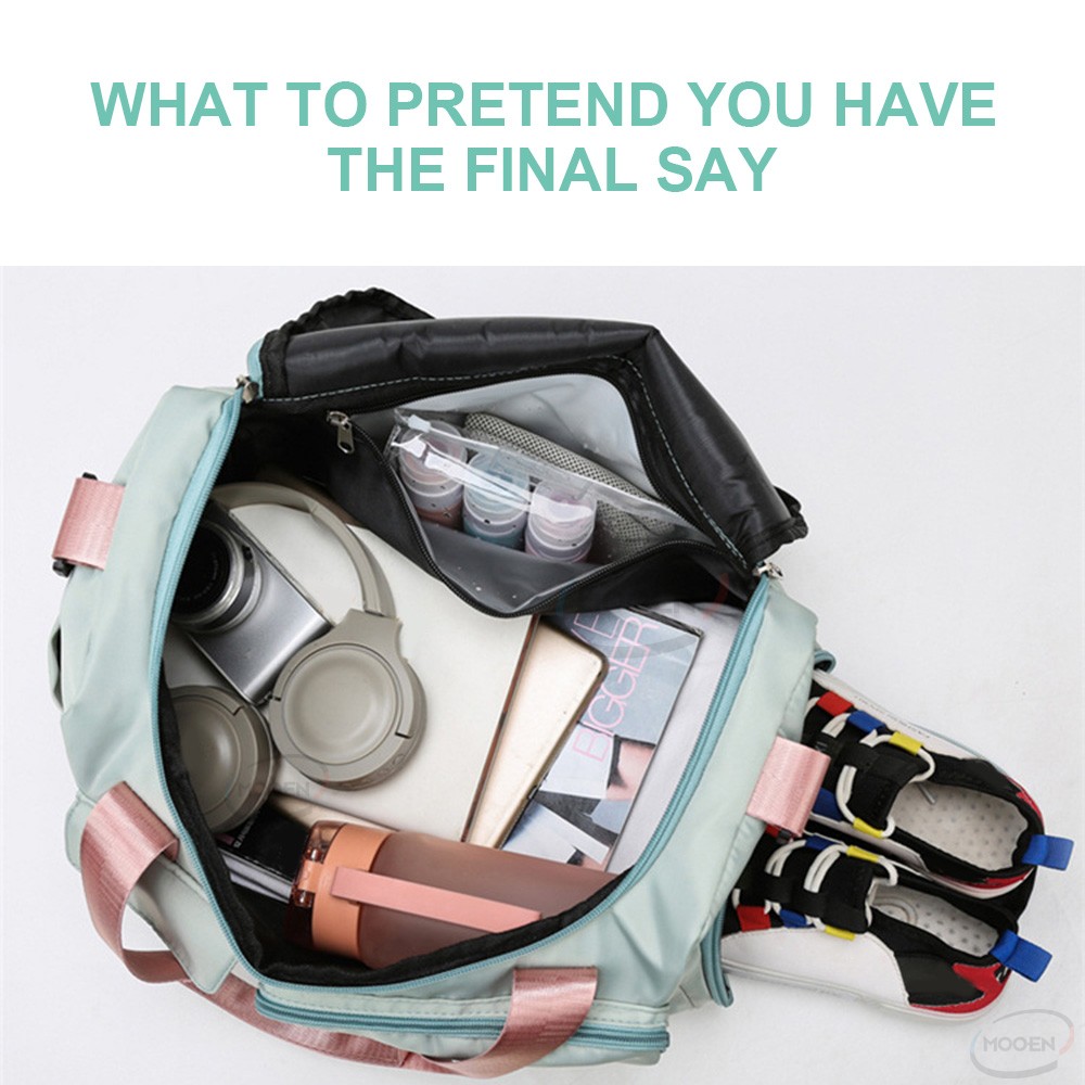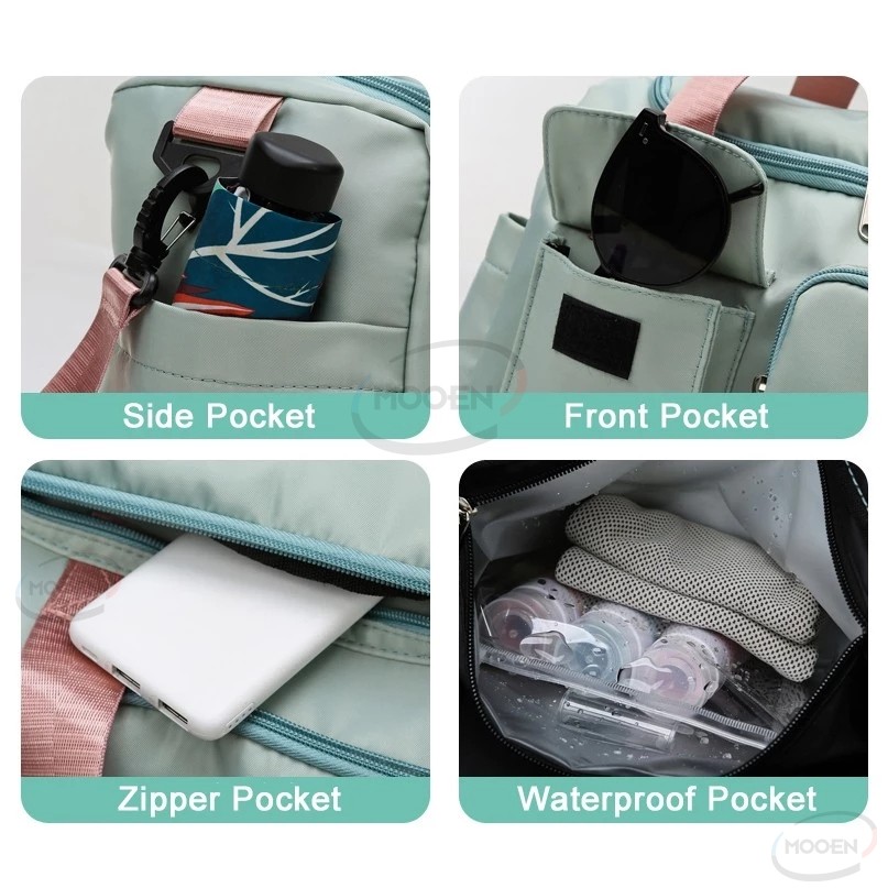 Inside wrap: zipper pocket, mobile phone pocket, ID pocket,shoes pocket