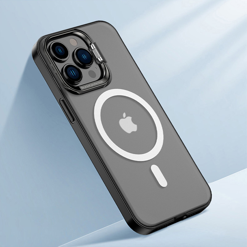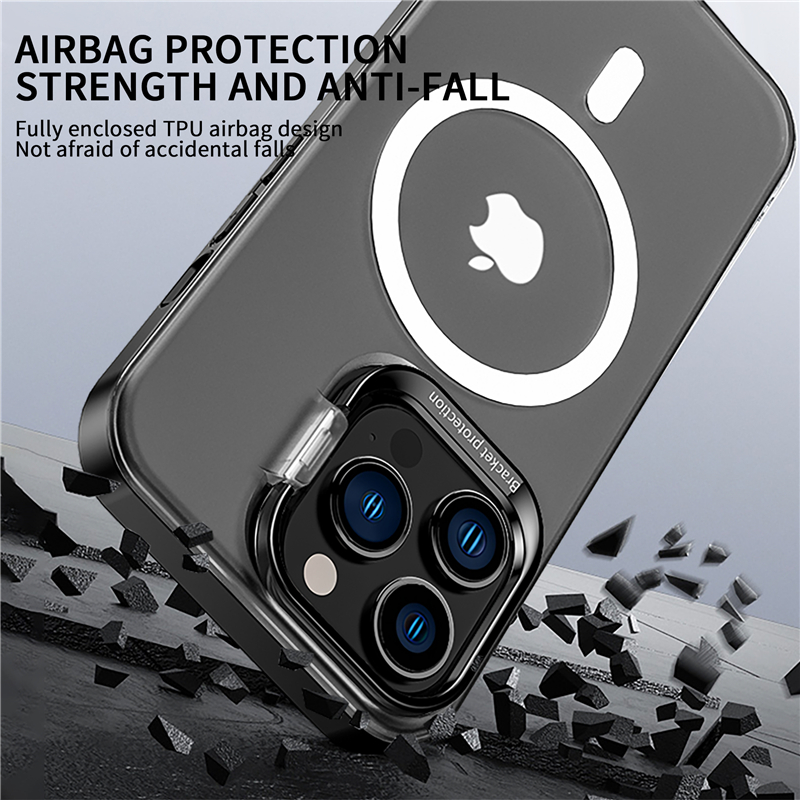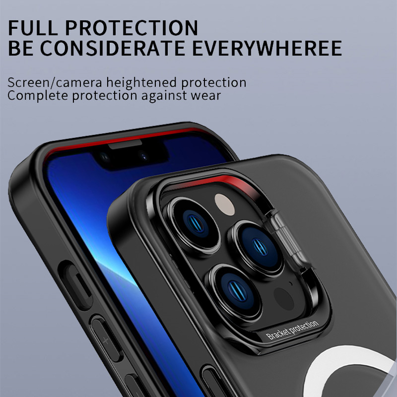 Features : Metal Camera Holder Phone Case + Magnetic Materials :Airbag soft silicone frame + anti-yellowing PC hard backplane Soft and hard combination, more shockproof performance Ultra-thin magnetic phone case is specially designed for iPhone13 / 12 series, compatible with Magsafe, stable charging 38 powerful magnetic cores are built in the magnetic ring, which can be accurately positioned and adsorbed, so it is firm and not easy to fall off Matte hard backboard, surface sprayed with oleophobic coating, anti-fingerprint, anti-stain, anti-sweat The screen and lens are protruding design, anti-scratch