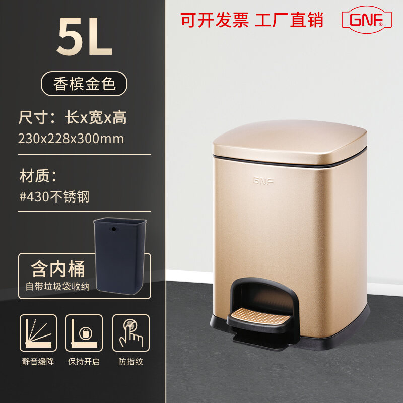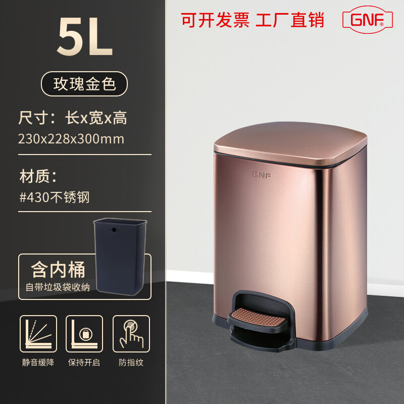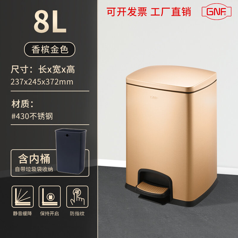 Stainless Steel Trash Can Step-on Kitchen Bathroom Creative Fashion Home Living Room Toilet Bedroom Square Step-on