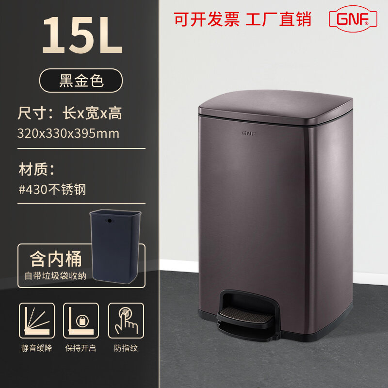 Stainless Steel Trash Can Household Pedal Square 20 Liters Bathroom Kitchen Large 25 Liters Commercial Office Storage
