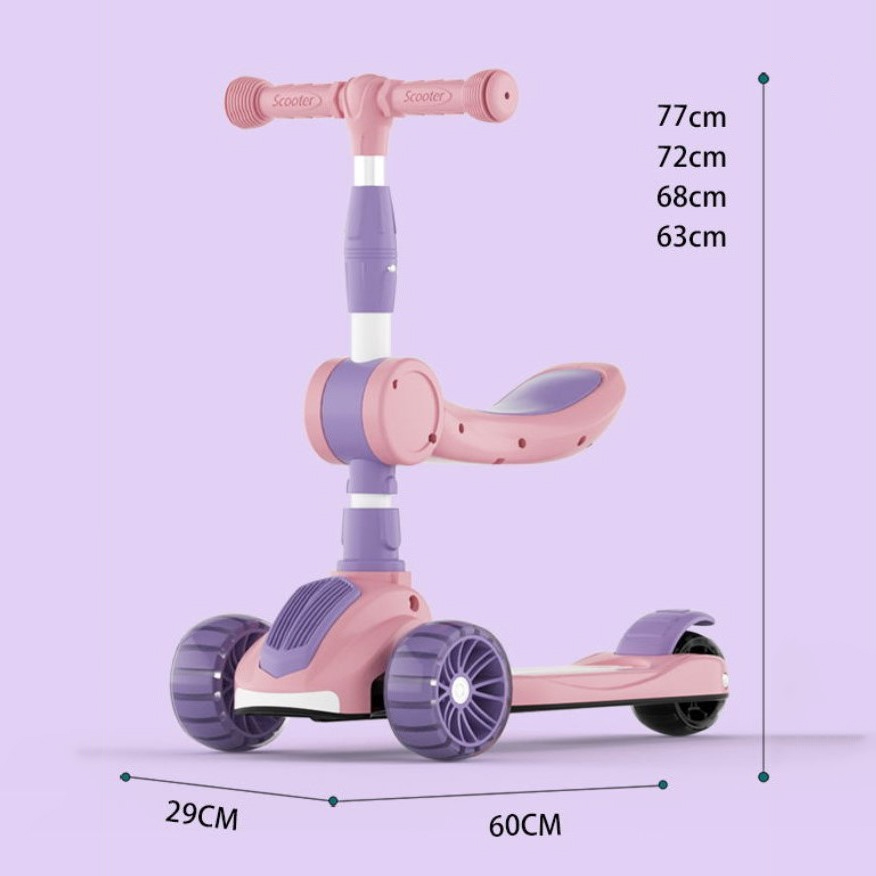 ?? OneTwoFit Kids Adjustable Light Scooter With Seat Music Colored Children Scooters