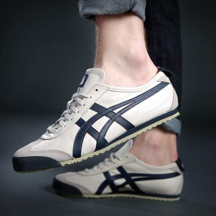 ☌❀ [Original and Available] 100 Tiger Shoe 2020 Men Women Sneakers Beige Unisex Super Soft Leather Sport Jogging Running Tiger Shoe