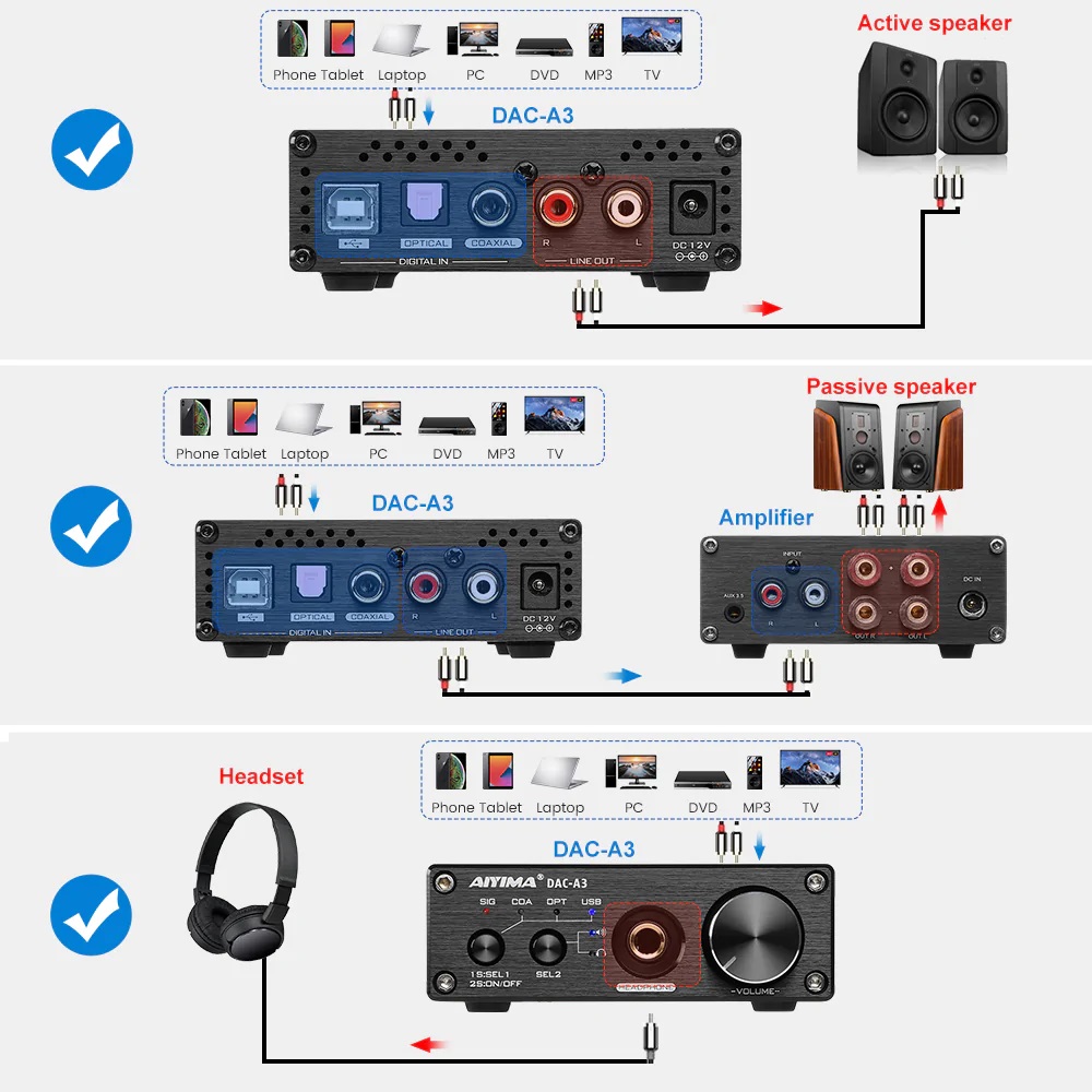 AIYIMA DAC-A3 Wired Desktop Headphone Amplifier & USB DAC (Official local stock - SG/UK plug)