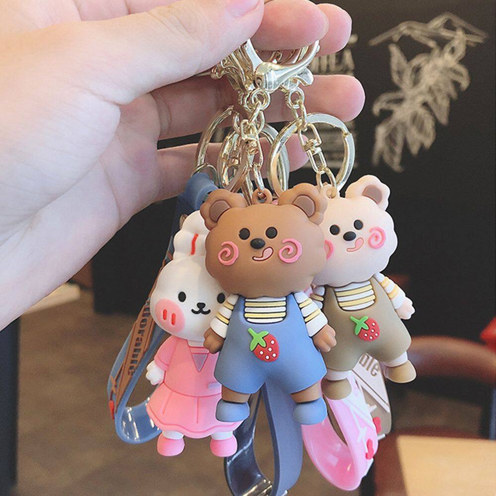 HUIHEYU Exquisite Cute Bear Bunny Doll Key Holder Car Key charms Couple Gift Blush Animal Keychain Wristlet Keychain Bag Ornaments Backpack Pendant
