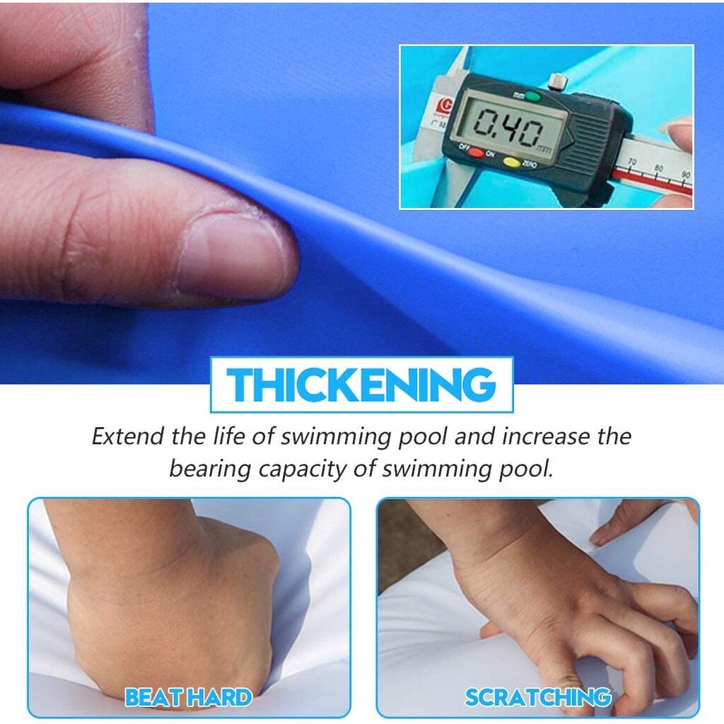 Product description:This product is suitable for new born and above, it is made off eco-friendly material.This product is adjustable, the user is able to adjust the height freely.This pool is design with safety valve so that it can be easy to inflate and deflate.The thickness matching for this swimming pool is the same as the thickness.After water is fill into it, the shape of the swimming pool will remain unchanged.This swimming pool is tough and durable, it is also cannot cut by a real knife.It is also built with three big valve so that user can adjust the height of the swimming pool by themselves.The fall point built on the bottom of the swimming pool can easily release water out of the swimming pool.Three layer design of this product is to prevent it from break and leakage.The water line inside the swimming pool have a top water line so that user can estimate the water level they want.Product features:External dimensions:- (L)150x(W) 110X (H)50cm (3kg)- (L)210 x (W)140 x (h) 65cm (5kg)- (L)262x(W)175x(H)60cm (6kg)- (L)305x(W)183x(H)60cm (8.2kg)-Multi purposes-showering, swimming, playing.-Eco friendly material-Thick, durable, & comfortable-Easy to carry & Store-Multi layer structure and valves-Material: eco-friendly PVCHow to play:-Guide your baby/kids to showering, swimming or playing inside this swimming pool-Firstly, use the electric pump to inflate the swimming pool.-User can adjust the height of the swimming pool when inflated according to their children height.-After user finish playing or swimming with their children, simply open the fall hole built below the swimming pool to easily send the water out of the swimming pool.Recommended for baby/kids. Adult supervision is need:** Suitable for how many people?1)(L)150x(W) 110X (H)50cm : 2-3 people2)(L) 210X (W)140x(H)65cm : 3-5 people3)(L) 260X (W) 170X (H)61cm : 5 -7 people4)(L)305x(W)180x(H)60cm : 7 - 8 people* Note:1. there will be 5-8cm differ due to manually measurement.2. color will be slightly differ due to different monitors or mobile screen showed.Parcel included:1PCs X swimming pool1PCs x electric pump (if selected pump)