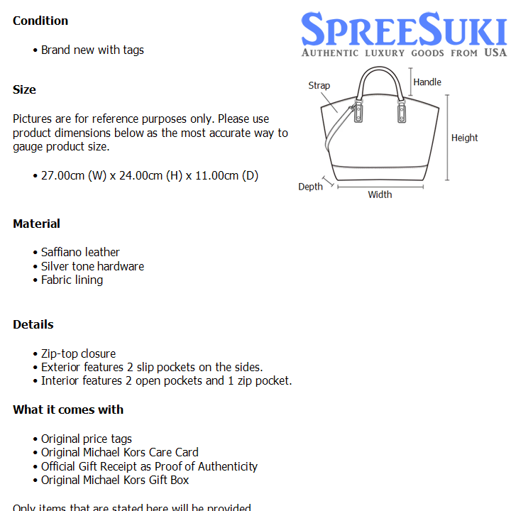 All our products are 100% authentic and purchased from Michael Kors stores in USA. We are a reputable registered business in Singapore and it is illegal to sell counterfeit goods in Singapore. This product also comes with a gift receipt which is printed by the Michael Kors store that we purchased the item from. It states the item that we purchased and the Michael Kors store that it was purchased from, proving the authenticity of the item. Buy with confidence.