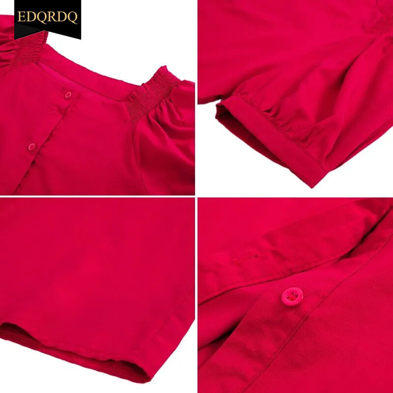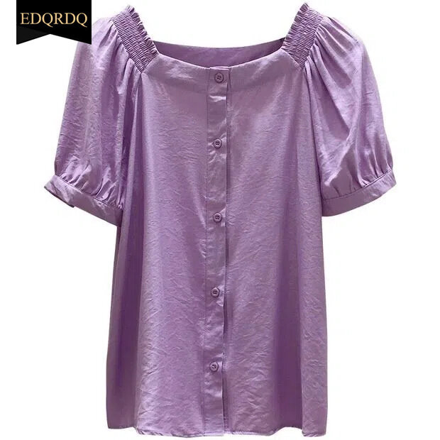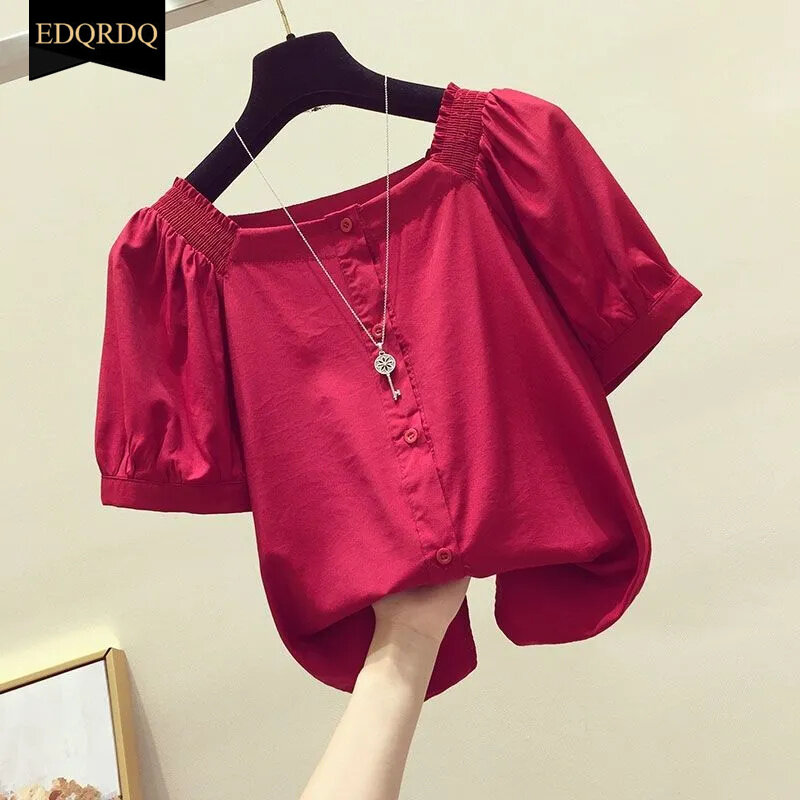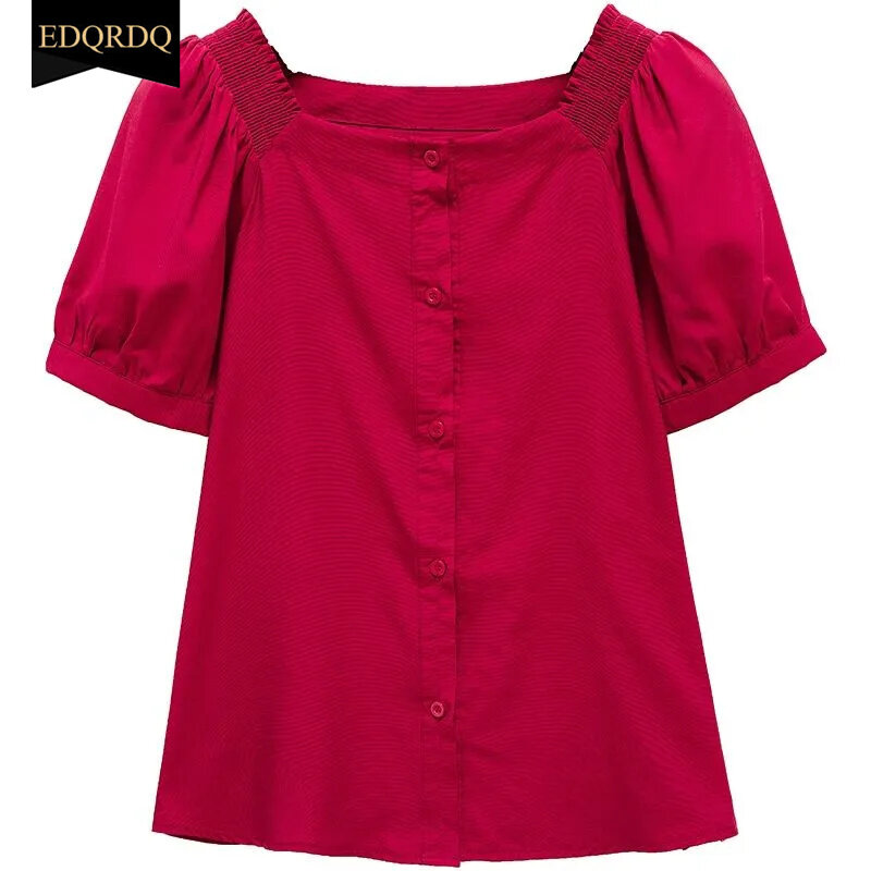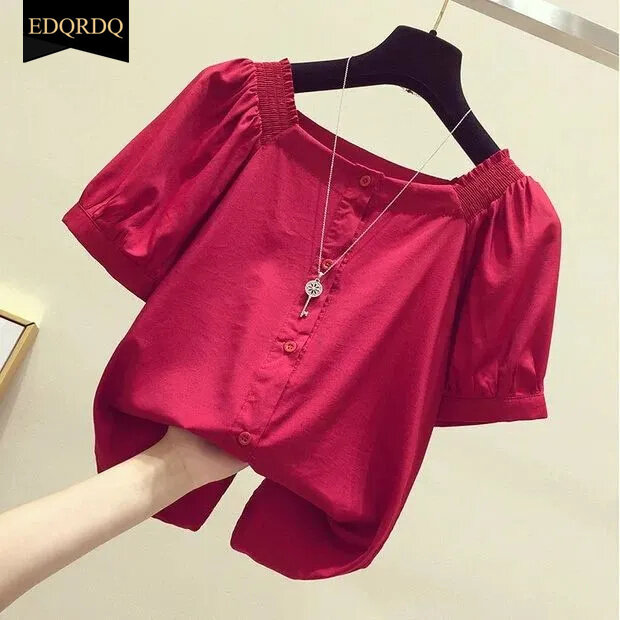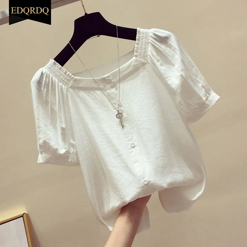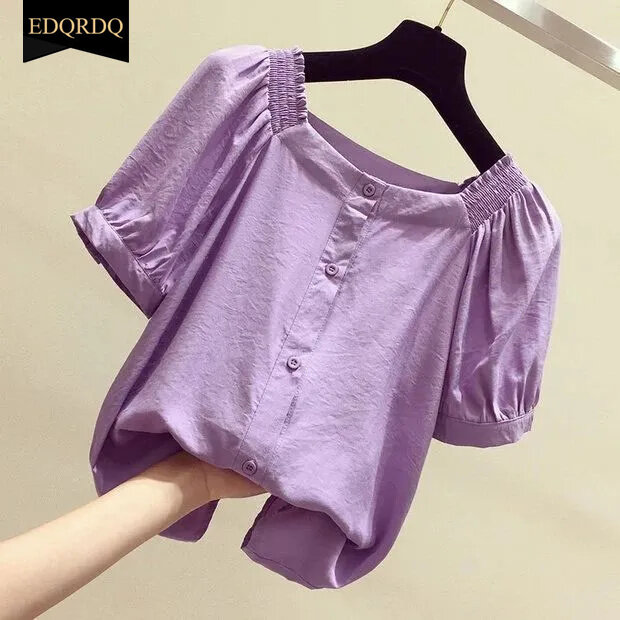 EDQRDQ Women's Short Sleeve Off Shoulder Blouse Button Down Puff Sleeves Tops
