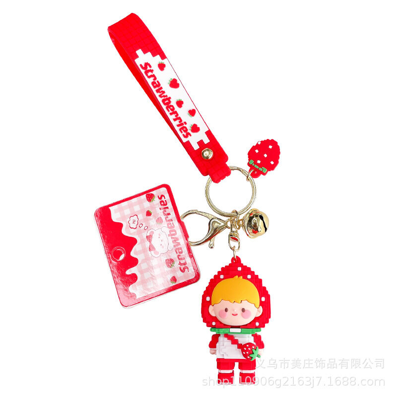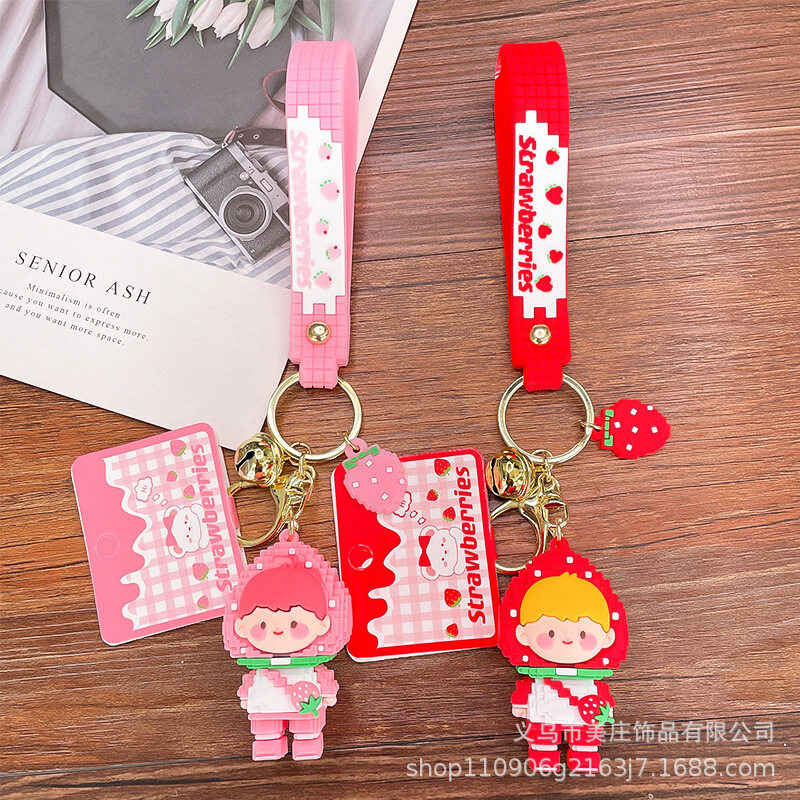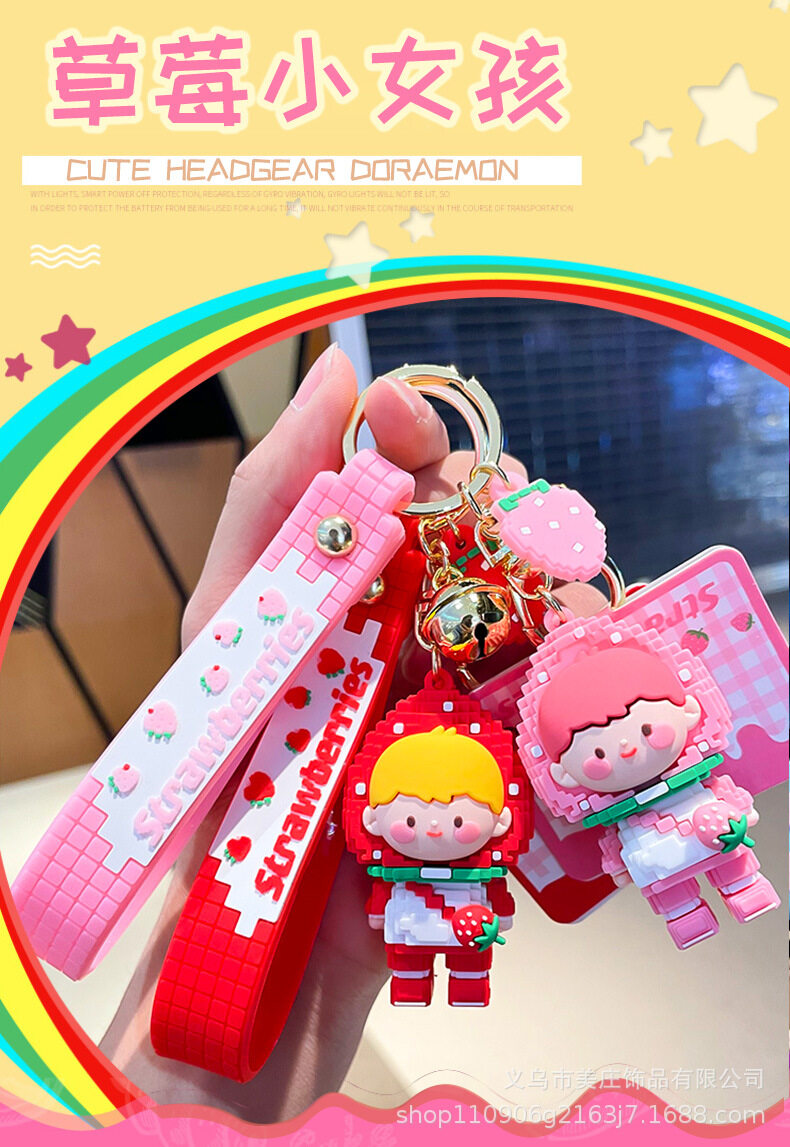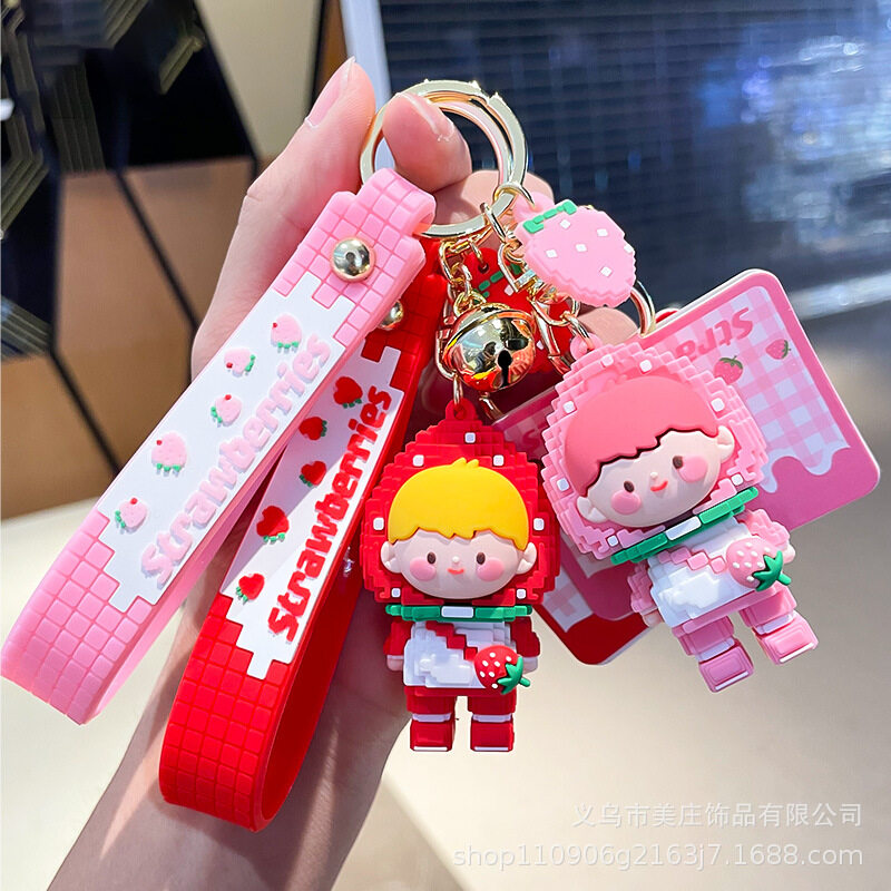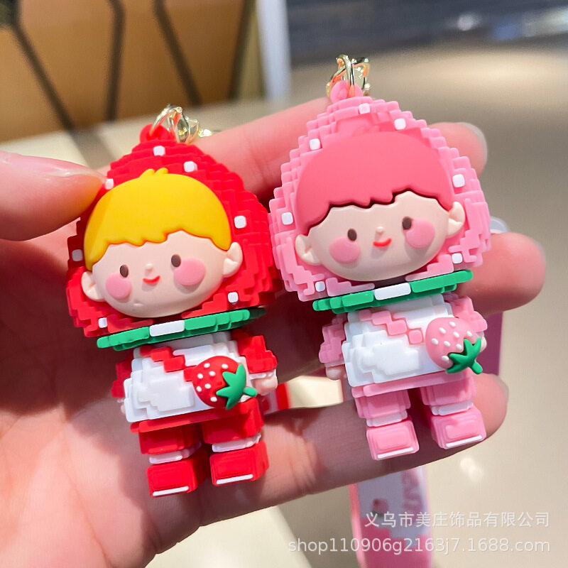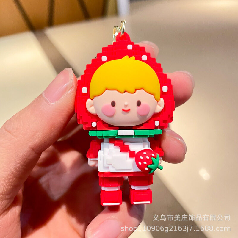 Strawberry Girl Silicone Keychain Pendant Cute Building Block Keychain Women's Exquisite Bag Ornaments Car Keychain Bag Pendant