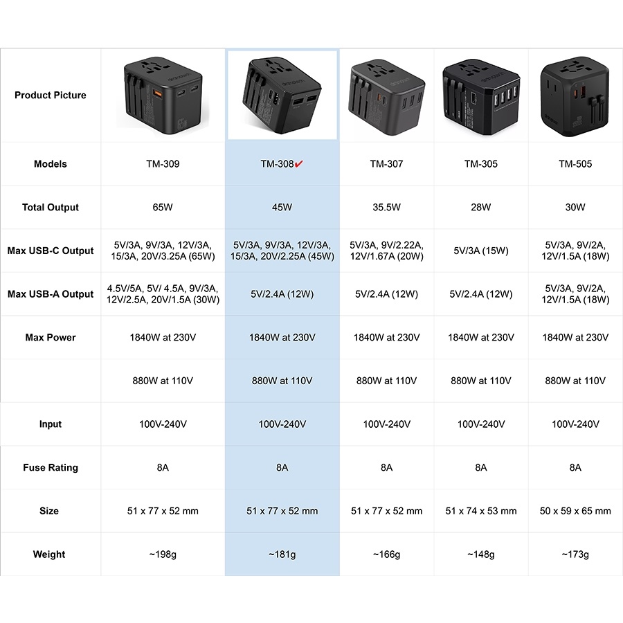 AIRDROPTECH 45W PD Type-C QC3.0 Port Universal Travel Adapter (Black)