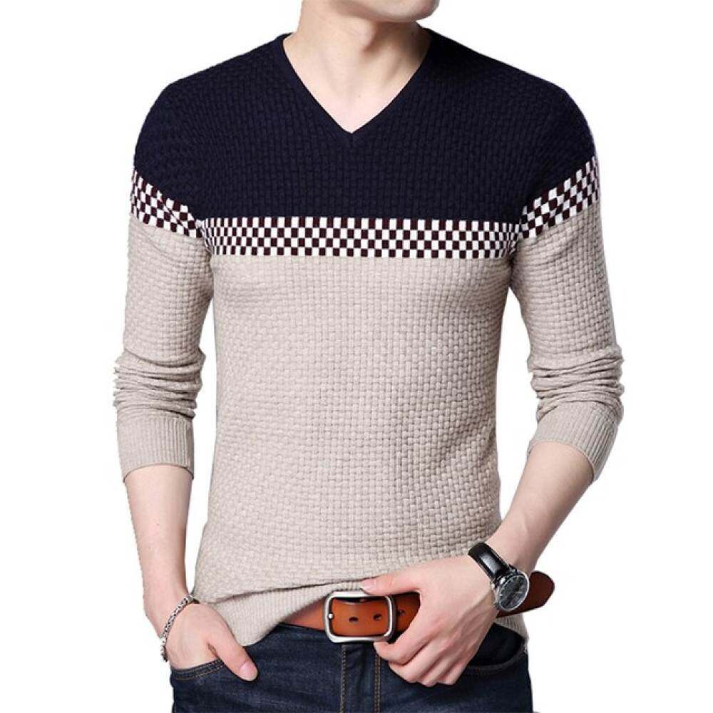 LUX ANGNER Brand Sweater Men Fashion V Neck Korean Slim Fit Pullove Sweaters For Man Casual Knitted Warm Sweater Male Autumn Winter Knitwear