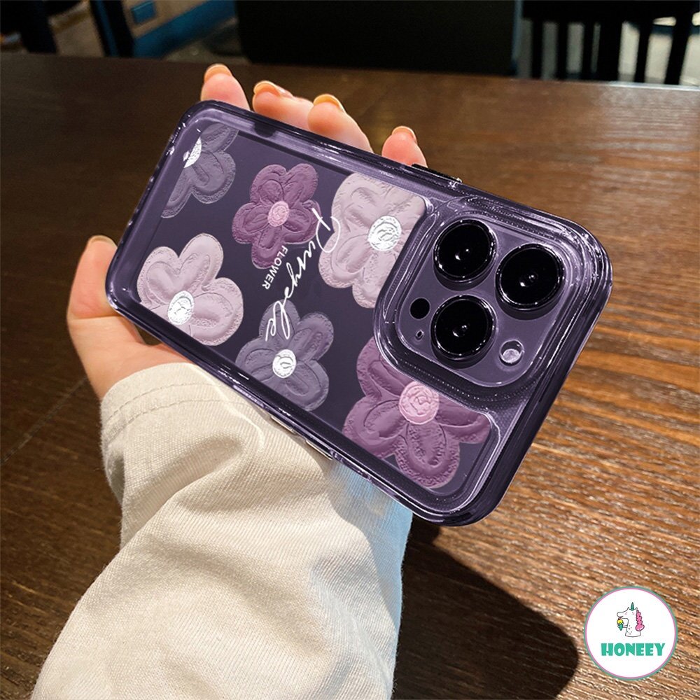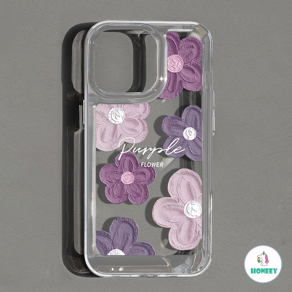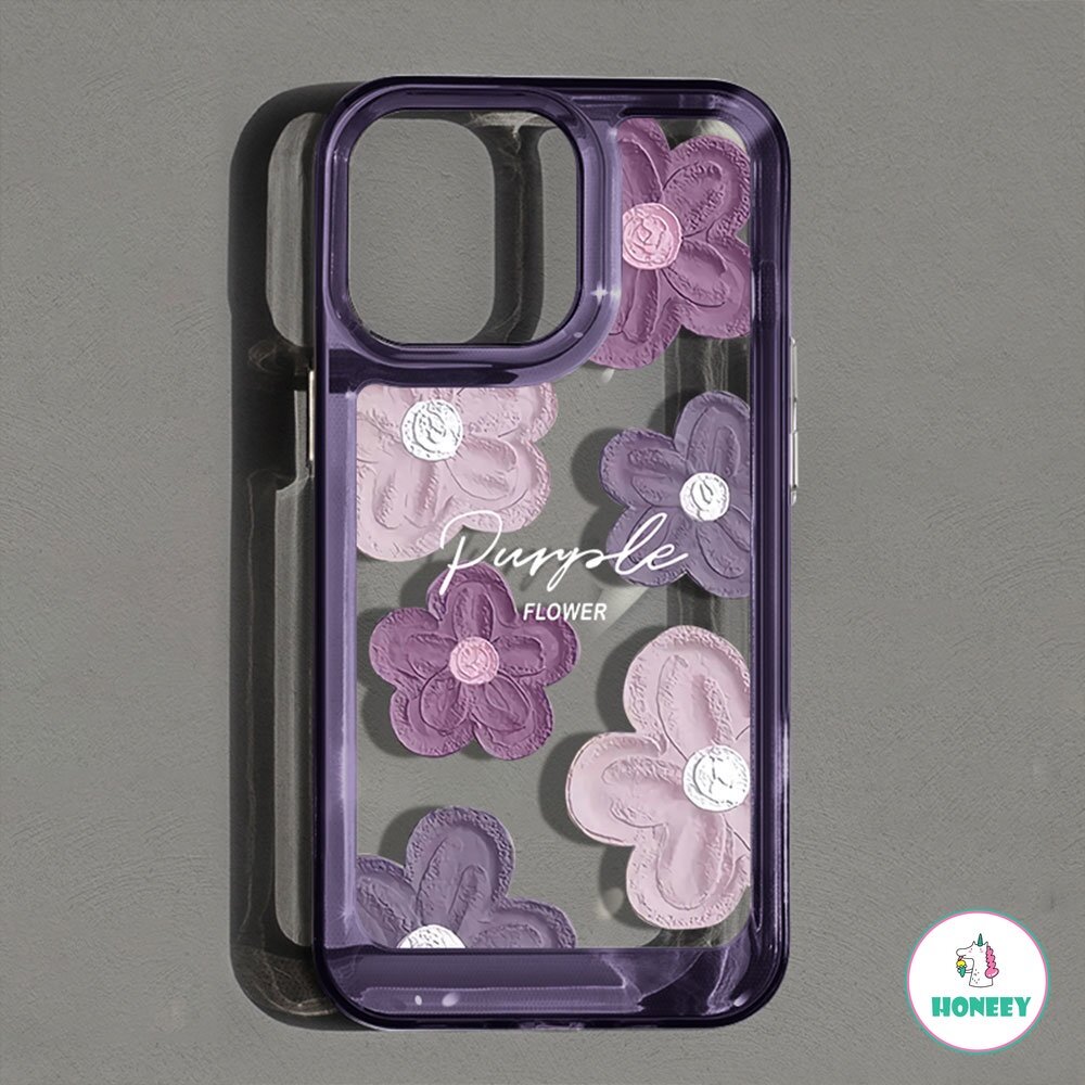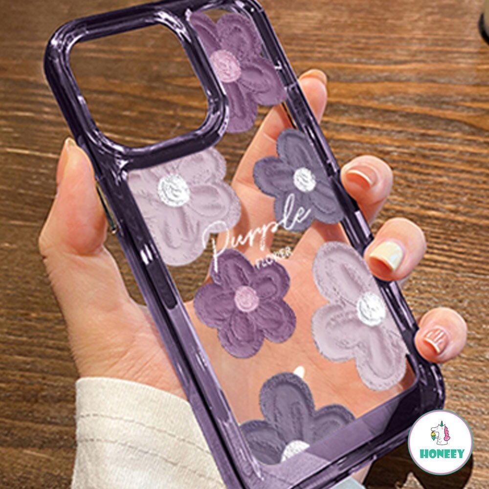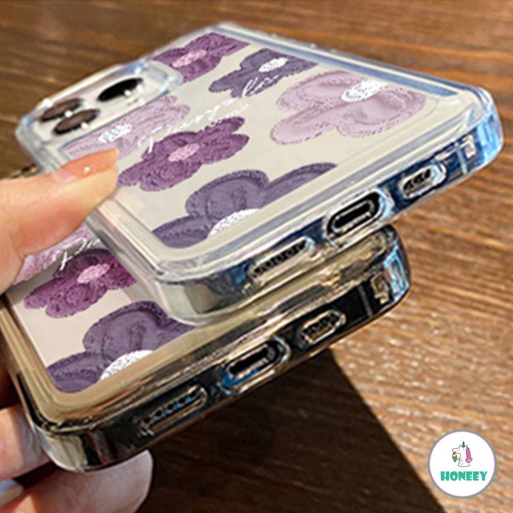 Purple Flower Four Corners Thickened Shockproof Phone Case for IPhone 11 15 14 13 12 Pro Max 7Plus 8 Plus XR XS X Hard TPU Back Cover