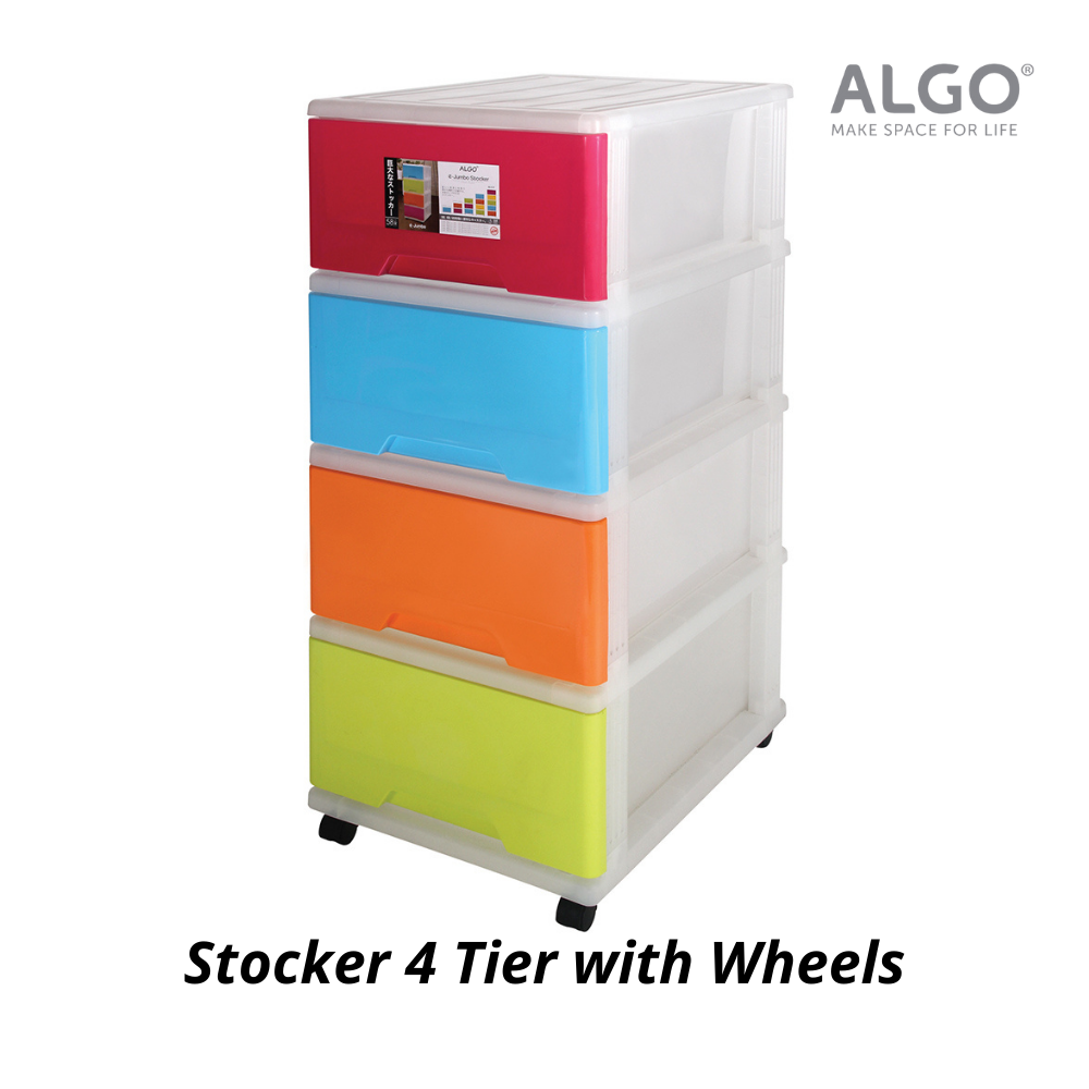 [SG Stock] Algo 4 Tier Jumbo Storage Stocker Home Organizer Drawer with Wheels