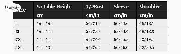 Size::3XL Suitable Height( cm )::175-190 1/2Bust(cm/in )::66/26 Sleeve(cm/in )::66/26 Shoulder(cm/in)::52/20.5