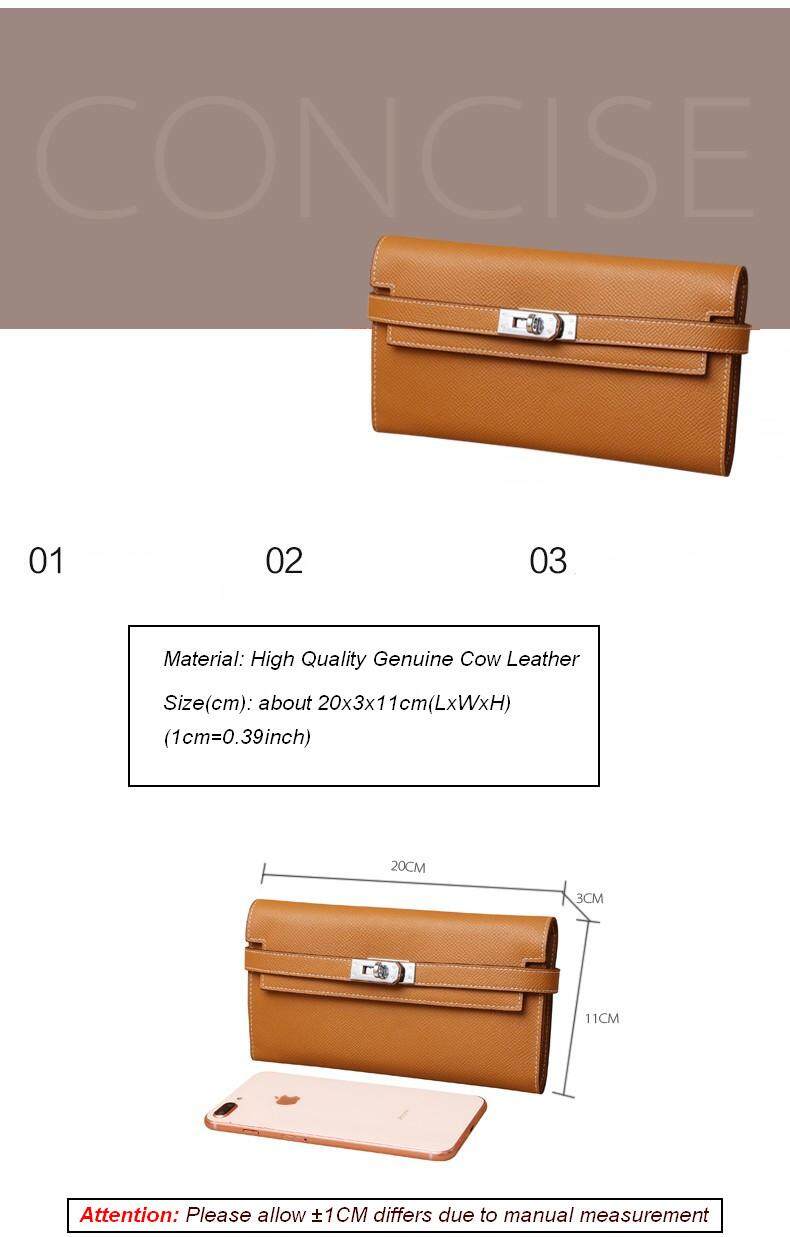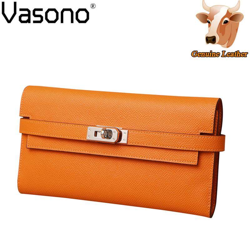 Vasono High Quality Italian Imported Genuine Cow Leather Epsom Birkin Long Clutch Wallet Women Purse Money Clip Holder