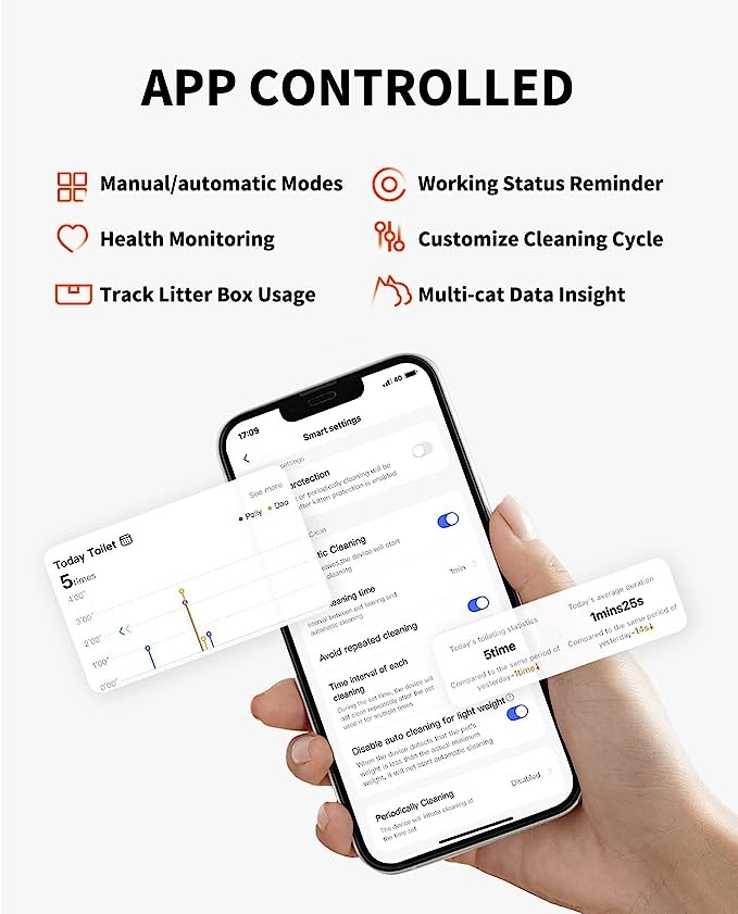 • 100% SAFE FOR CATS: With several safety mechanisms as well as excellent smart sensors, the xSecure system offers your cat a safe potty experience. It consists of infrared sensor, weight sensors, remote alerts, an accident protection system, and smart detection to keep your cats safe. In addition, It automatically pauses when your cat approaches or detects a weight change. Warm Tips: Applicable weight range for cats: 1.5kg to 8kg, do not use for young pets under 6 months.